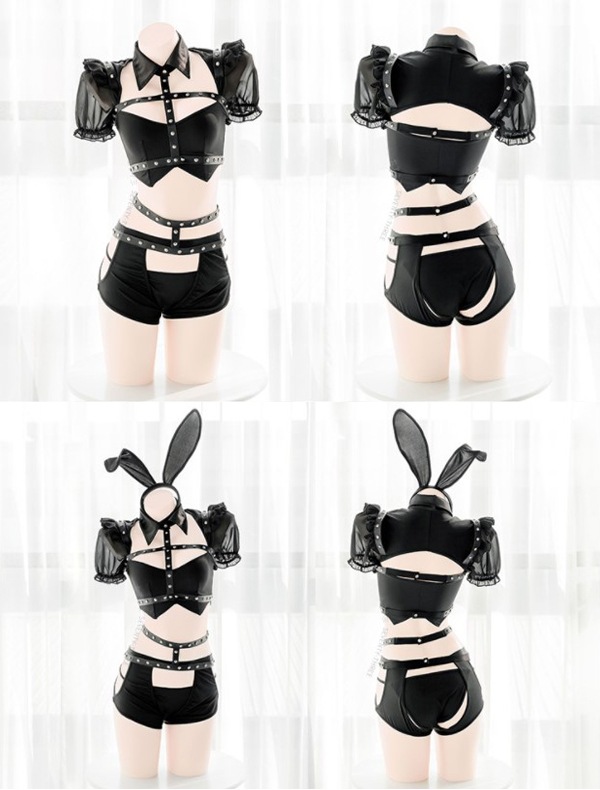 ブラックメッシュバニーガール かわいいコスプレ5点セット 7moe ナナモエ S0639 ランジェリーコスチューム Lingerie Costume 7moe Malymoon マリームーン オフィシャルウェブストア